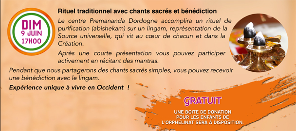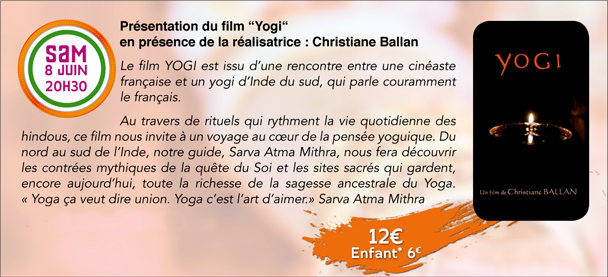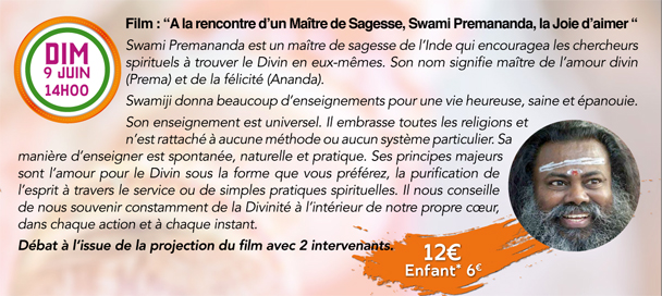 FILMS - ATELIERS - EXPOSITION CONCERTS ET CHANTS - RESTAURATION | | | Un festival sur l’Inde, pourquoi ? La culture indienne traditionnelle, par sa compréhension du sens de la Vie, ses enseignements et sa façon de vivre le sacré au quotidien, offre une voie vers un monde de Paix et d’Harmonie. Dans cette période où la dysharmonie s’installe dans nombre de domaines de nos vies et de notre société, émerge en parallèle un fort appel intérieur pour tourner la page de valeurs matérialistes devenues obsolètes. C’est dans cette perspective que s’inscrit ce premier festival de l’Inde à Sarlat. « Tu es cela ! Ce que tu cherches, c’est toi-même ! C’est cela l’enseignement de l’Inde. » Extrait du film Yogi C'est une belle collaboration entre le Cinéma Rex de Sarlat qui met à disposition ses salles, sa logistique et tous les talents d’Arnaud Vialle et son équipe avec les membres de l’association Jai Prema, qui soutient l’orphelinat Prema Home, sis au Tamil Nadu. Le bénéfice de cet événement alloué à l'association Jai Prema sera reversé dans son intégralité à l'orphelinat Prema Home. | |